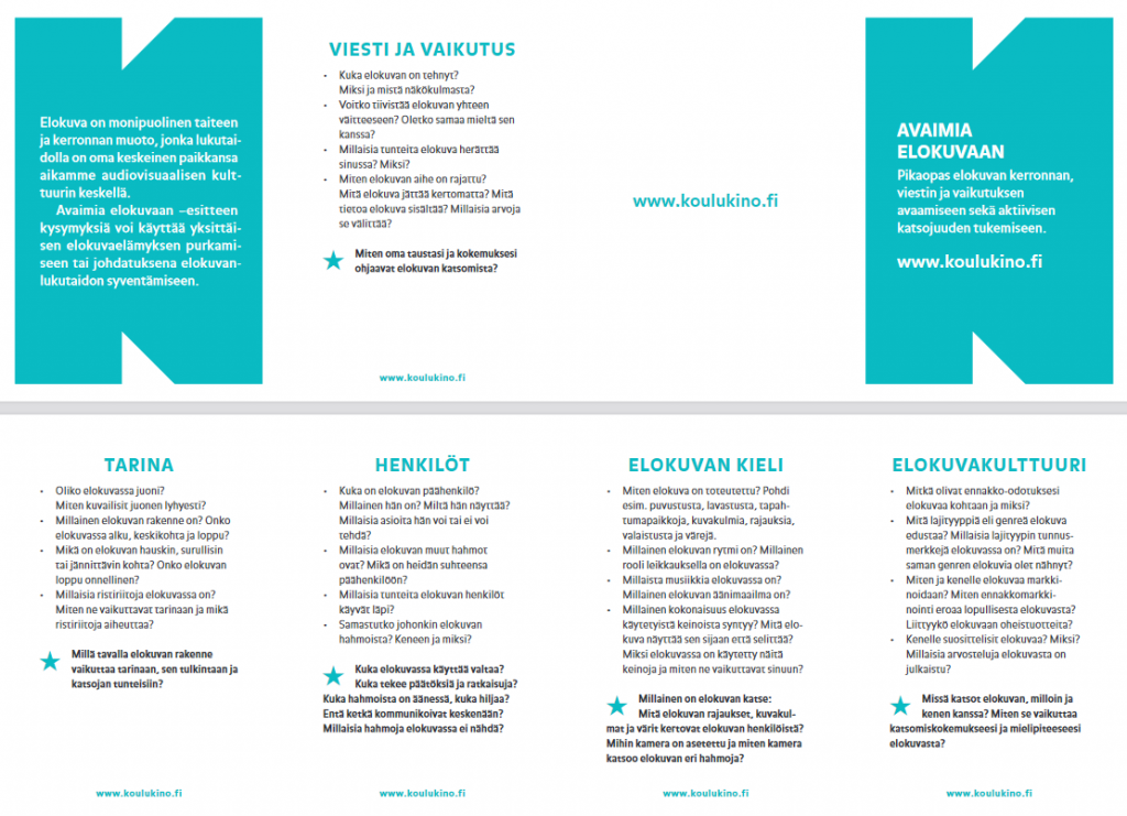 Lataa esitteet alta pdf-muodossa. Painettuja esitteitä voit tilata Koulukinolta lähettämällä meille sähköpostia.