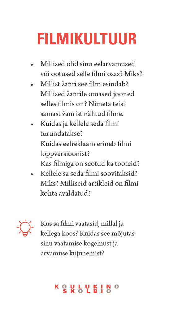 Selkeän kysymyspatteriston avulla lähdet purkamaan elokuvaa kuin elokuvaa ryhmäsi kanssa.